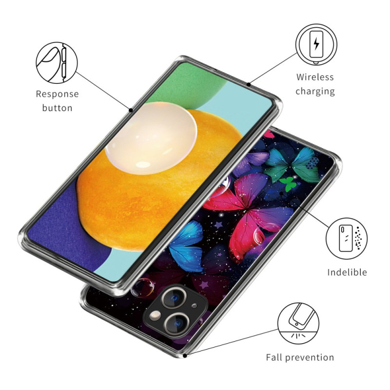 Protect your iPhone 15 Plus in style with our shockproof case featuring colourful butterflies. Combining style and protection, this flexible TPU case absorbs shocks, resists scratches and offers a comfortable grip. Its ultra-slim design fits perfectly in your pocket, while its sensitive buttons ensure responsive use.
