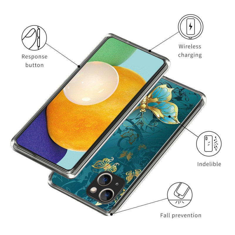 Protect your iPhone 15 Plus in style with our shockproof case featuring a golden butterfly motif. Made from flexible TPU, this case offers optimum protection against bumps and scratches, while remaining ultra-slim and stylish. Its unique design and sensitive buttons make it practical for everyday use.