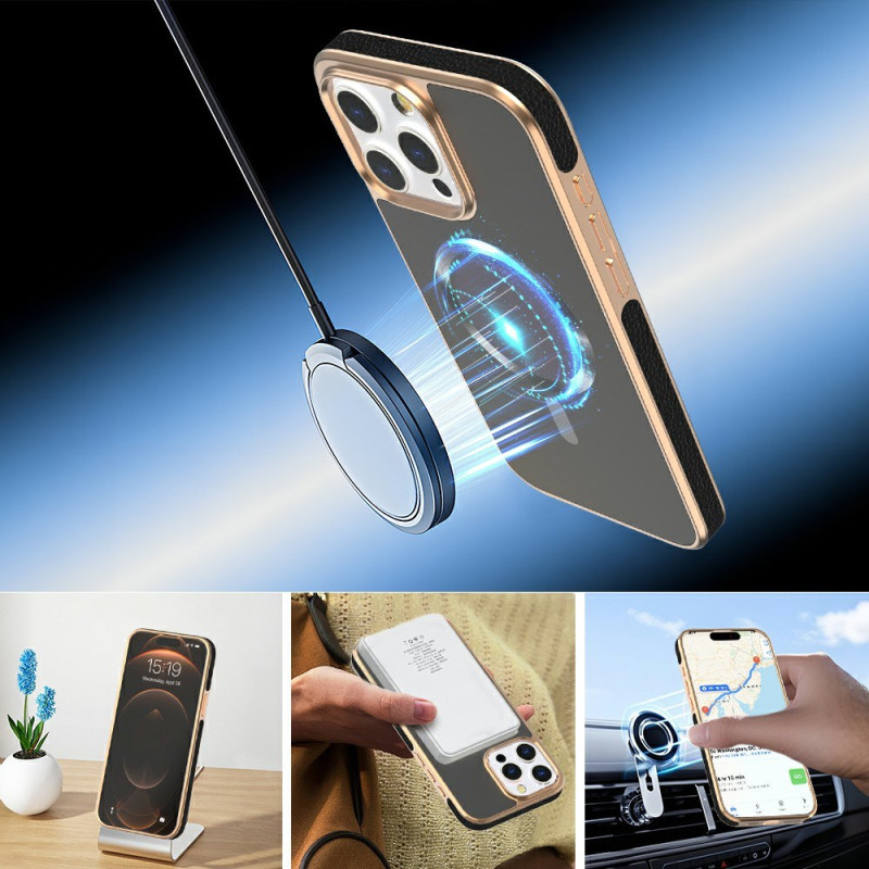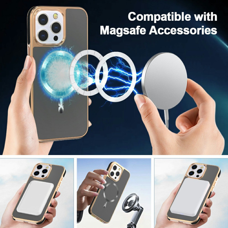 Discover our elegant and protective magnetic case for iPhone 15 Pro Max. MagSafe compatible, it offers a stylish electroplated finish and durable protection against everyday wear and tear. With its precise cutouts and reinforced protection for the screen and camera, this case combines functionality and aesthetics.