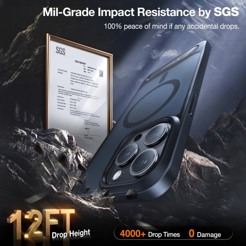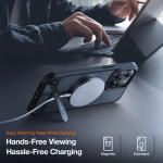Robust protective case for iPhone 15 Pro Max with integrated stand. Made from TPU and PC, it offers excellent protection against everyday wear and tear while remaining stylish. Compatible with MagSafe wireless charging, it features powerful magnets for optimum grip.
