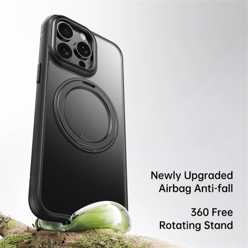 Discover our premium case for iPhone 15 Pro, combining protection and functionality. It features a 360° rotating stand and is compatible with MagSafe wireless charging. Its elegant design offers a comfortable grip and enhanced protection for the camera. Enjoy the best possible experience with your iPhone.