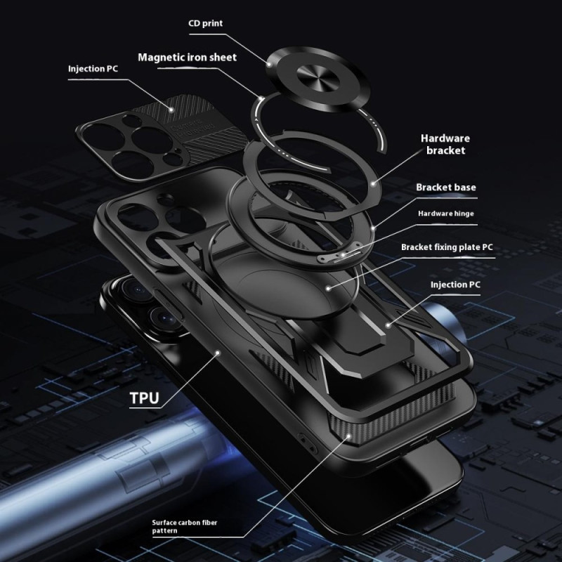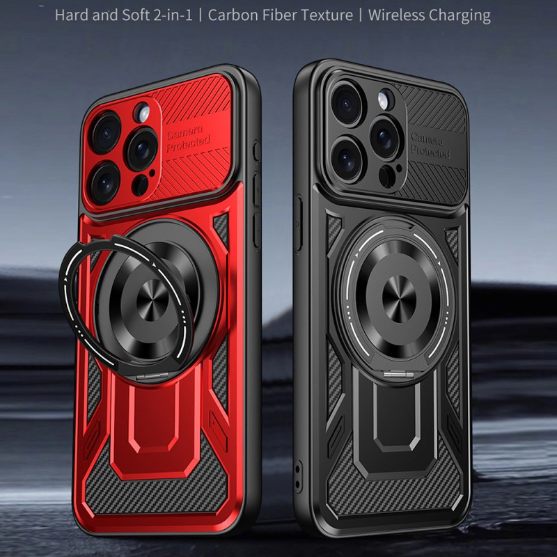 Discover our ultimate protective case for iPhone 15 Pro. Featuring a 360° rotating holder and MagSafe compatibility, it offers military-grade protection thanks to its dual TPU and PC layer. Its ergonomic design with carbon texture combines style and functionality for optimum everyday use.