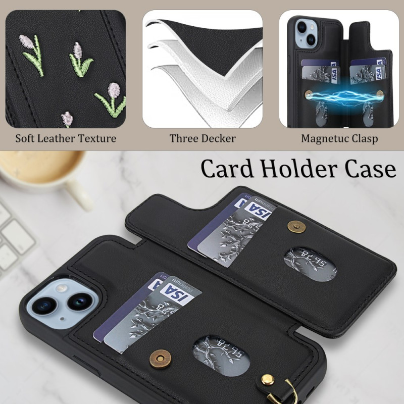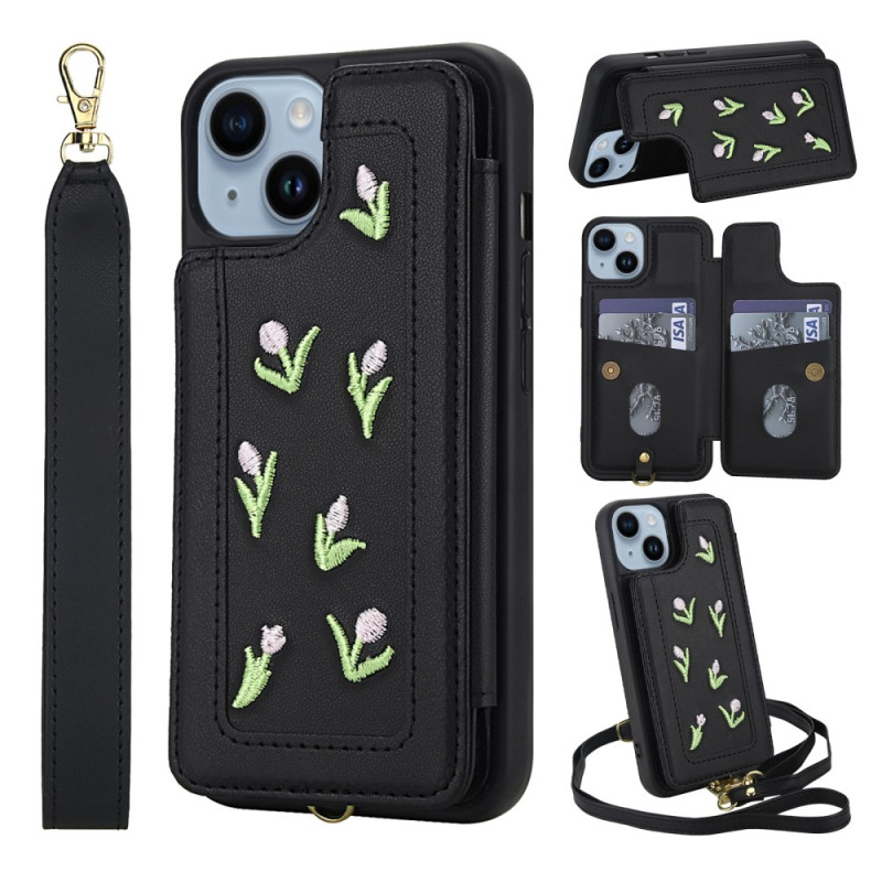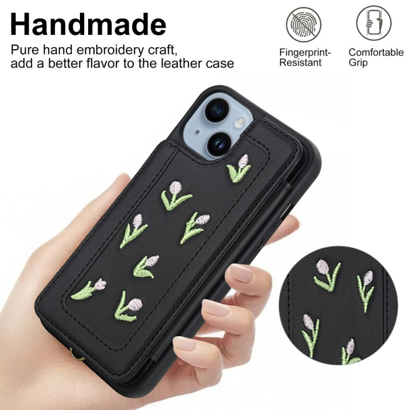Discover our elegant case for iPhone 15 with handmade embroidery, integrated card holder and adjustable strap. Combining style and functionality, it offers complete protection and a versatile design for your smartphone.