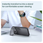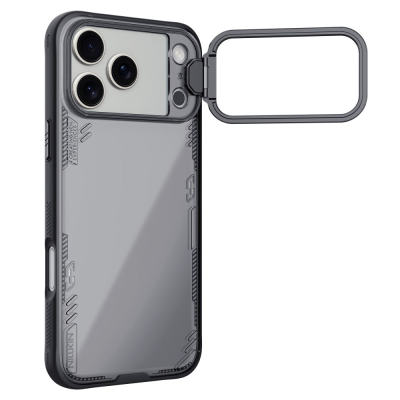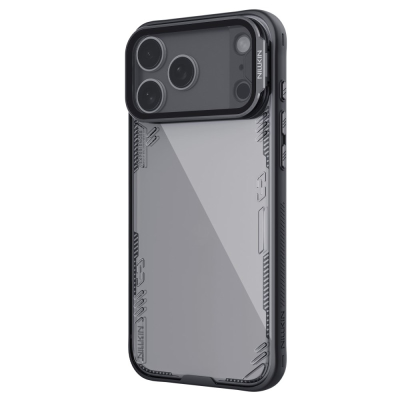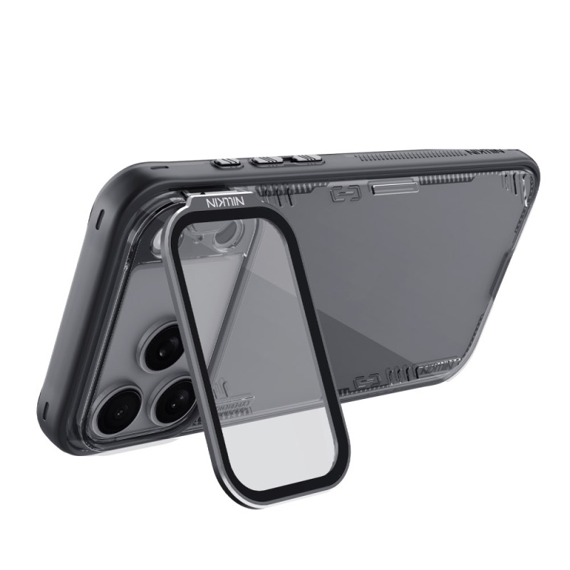 The NILLKIN Iceblade Prop case for iPhone 17 Pro Max features a futuristic design inspired by metallic and luminous lines for a bold, modern aesthetic. Made from rigid PC and flexible TPU, it combines a solid outer case with effective shock absorption, offering the perfect balance between style and protection. Its transparent cover protects the camera and transforms into a foldable stand for your videos and hands-free calls. Thin and light, it keeps your smartphone looking stylish while protecting it from scratches, bumps and dirt.