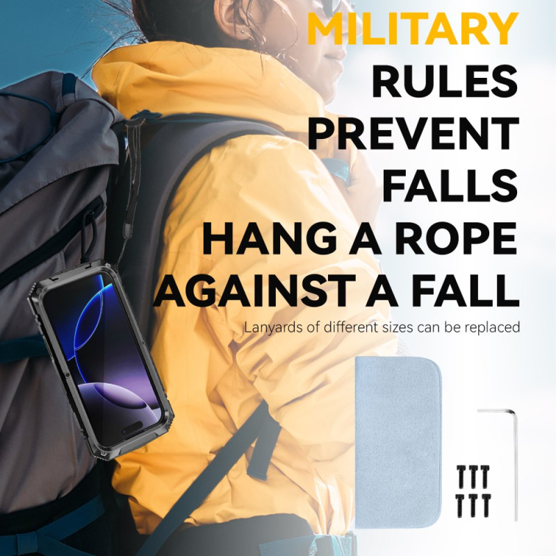 Adventure calls. Take up the challenge, safe in the knowledge that your iPhone 17 Pro is equipped for every challenge with the R-JUST case. Its sturdy suspension strap lets you attach it to your gear, keeping it secure and accessible whether you're on the trail or climbing. Its multi-material armour, including a metal front panel with tempered glass screen, forms an impenetrable bulwark against falls. Back at camp, the integrated stand offers optimum viewing comfort and wireless charging makes it easy to recharge.
