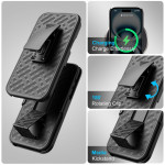 When uncompromising protection meets extreme versatility, your iPhone 17 is ready for anything. Its key innovation is the sliding screen cover, a mobile armour that protects your screen from scratches and bumps when you're not using it. Constructed from PC and TPU with reinforced corners, it's designed to absorb the most severe impacts. Free your hands with the integrated video holder, or attach it securely to your belt with the swivel clip for quick access. All in a woven texture that adds style to this fortress.