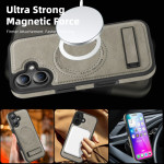 Designed to adapt to every moment of your day, this case transforms your iPhone 17 into a centre of productivity and entertainment. Its foldable metal stand is the centrepiece, unfolding to provide stable viewing both vertically for video calls and horizontally for movies. Dressed in premium PU leather, it incorporates a magnetic ring for perfect compatibility with the MagSafe ecosystem. Safety is ensured by raised edges protecting the screen and camera from the hazards of everyday life.