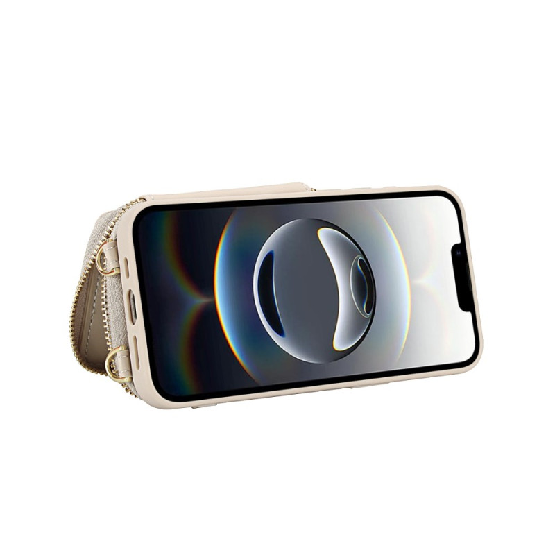 2-in-1 wallet case for iPhone 17E / 16E with zip and RFID protection. Stylish design in PU leather and TPU, with detachable shoulder strap for hands-free carrying. Integrated stand function for comfortable video viewing.