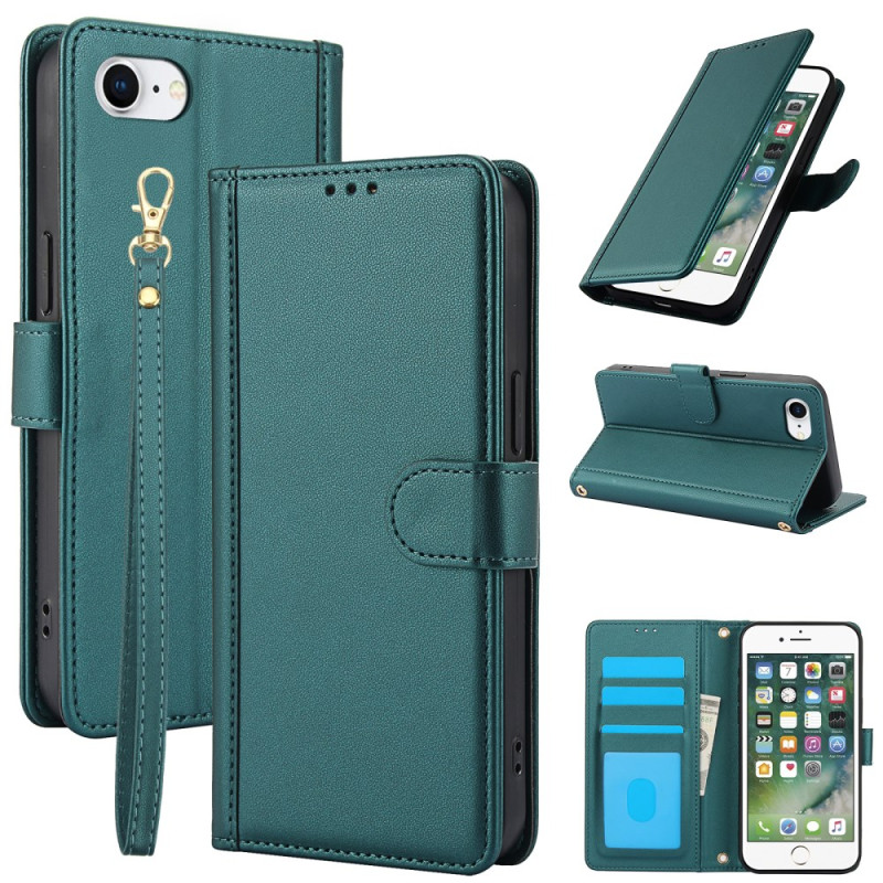Discover our PU leather wallet cover for iPhone 16E. With an integrated stand, card slots and detachable wrist strap, it offers complete protection and optimum functionality.