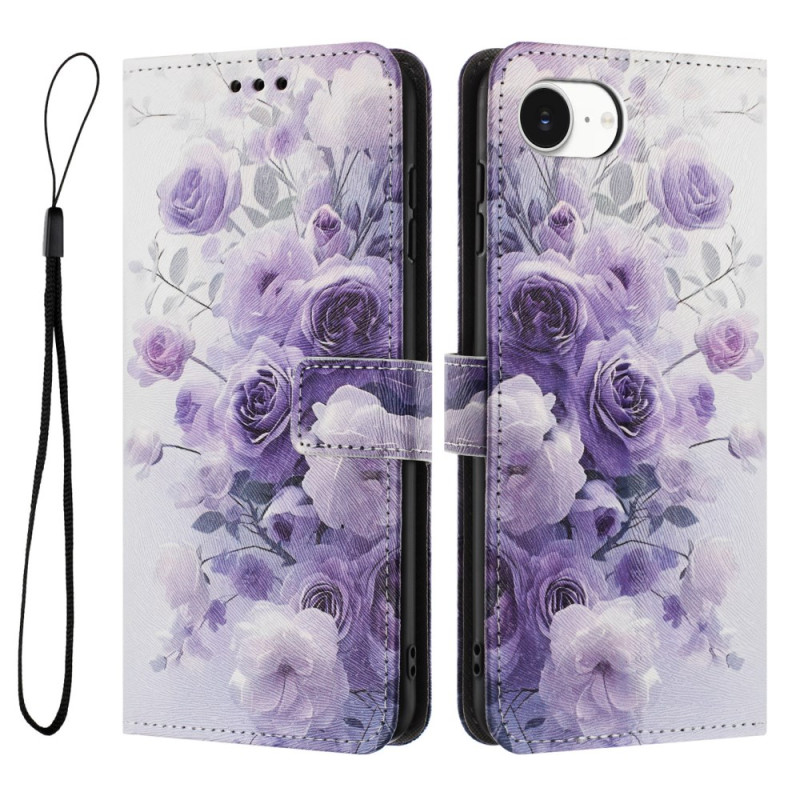 Protect your iPhone 17E / 16E in style with this stylish wallet case featuring a violet-pink motif. Featuring card slots, a foldable stand and a practical hand strap, it combines style and functionality to make your everyday life easier.