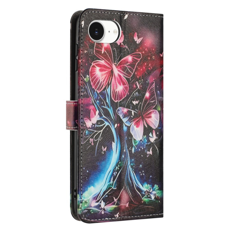 Protect your iPhone 17E / 16E in style with this wallet case featuring a butterfly tree motif. With multiple card slots, a practical folding stand and a hand strap, it combines style and functionality.