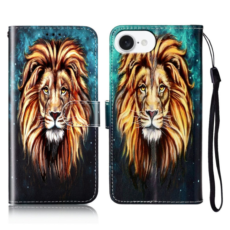 Protect your iPhone 17E / 16E in style with this stylish wallet case featuring an artistic lion motif. Featuring multiple card slots, an adjustable holder and a practical hand strap, it combines functionality with a unique design for complete everyday protection.
