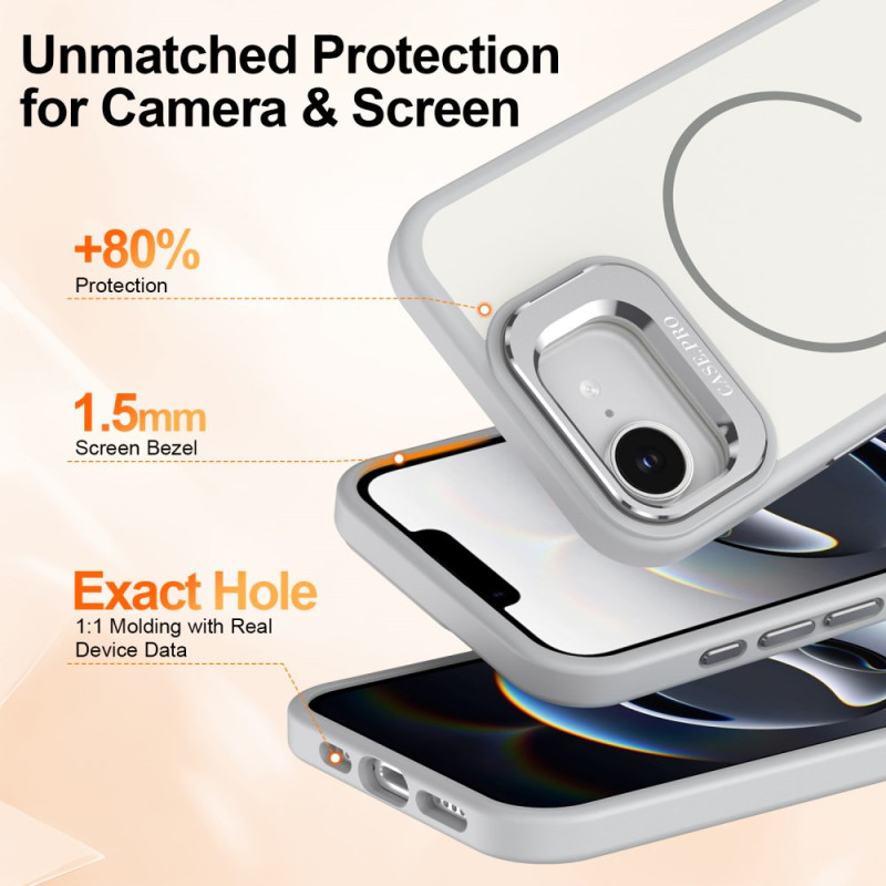 Protégez votre iPhone avec élégance grâce à cette coque premium compatible MagSafe. Son support pliable intégré et sa construction renforcée offrent une protection optimale tout en permettant une utilisation mains libres pratique.