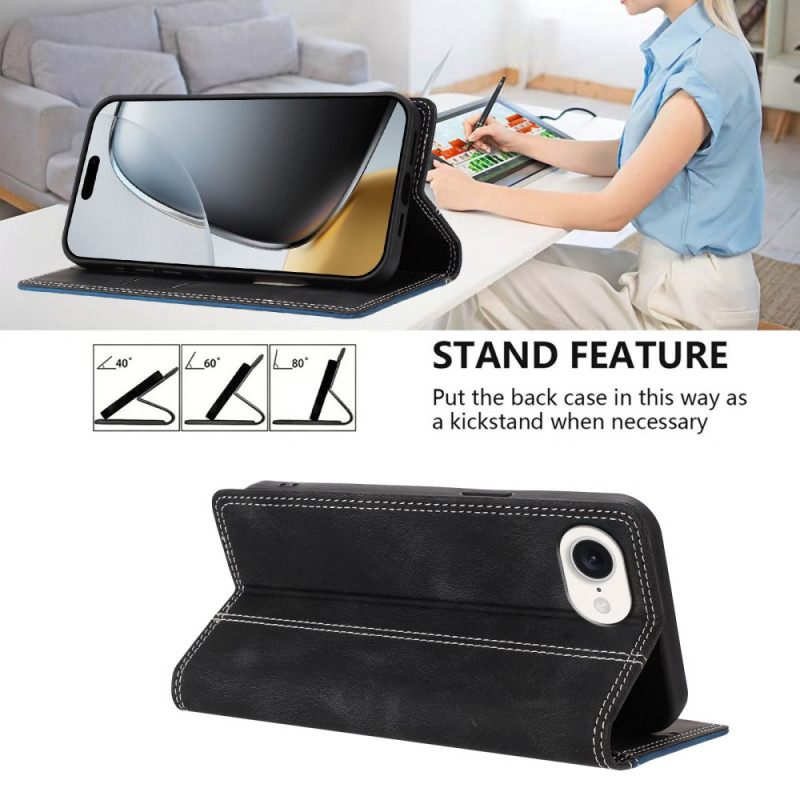 Protect your iPhone 17E / 16E in style with this wallet case in premium PU leather with a silky touch. Featuring RFID blocking technology, 2 card slots, a powerful magnetic closure and integrated hands-free support...