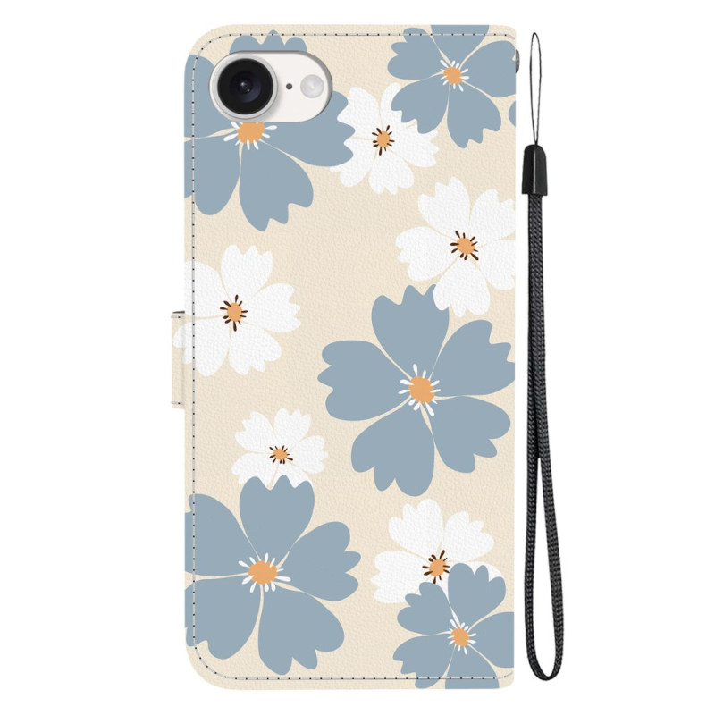 Protect your iPhone 17E / 16E in style with this wallet case featuring a blue daisy motif. Featuring a foldable stand, card slots and a practical hand strap, it combines style and functionality for your everyday life.