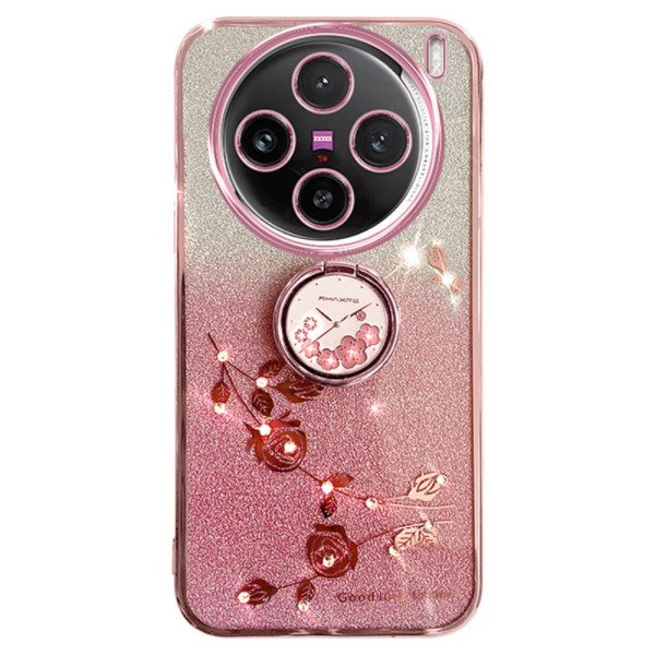 Proteggete il tuo Vivo X100 Pro 5G con stile grazie a questa scintillante cover ornata da fiori eterni e strass. L'anello rotante integrato consente una visione mani libere e una presa sicura per un uso quotidiano ottimale.