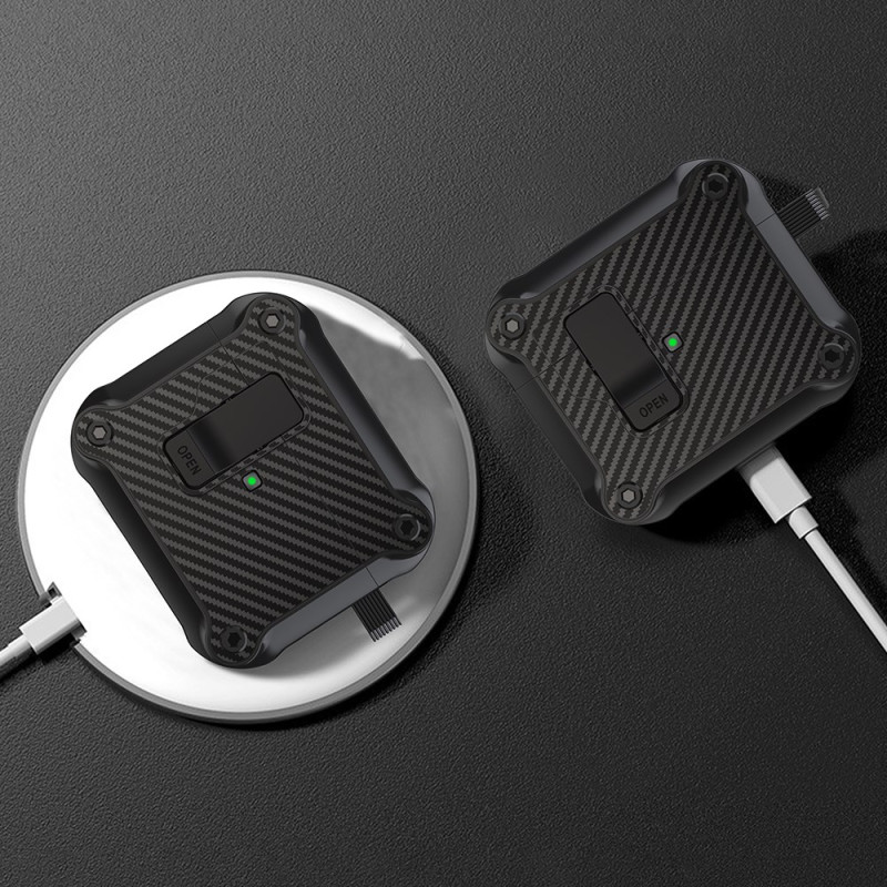 Con la sua texture in fibra di carbonio e la chiusura magnetica automatica, questa cover