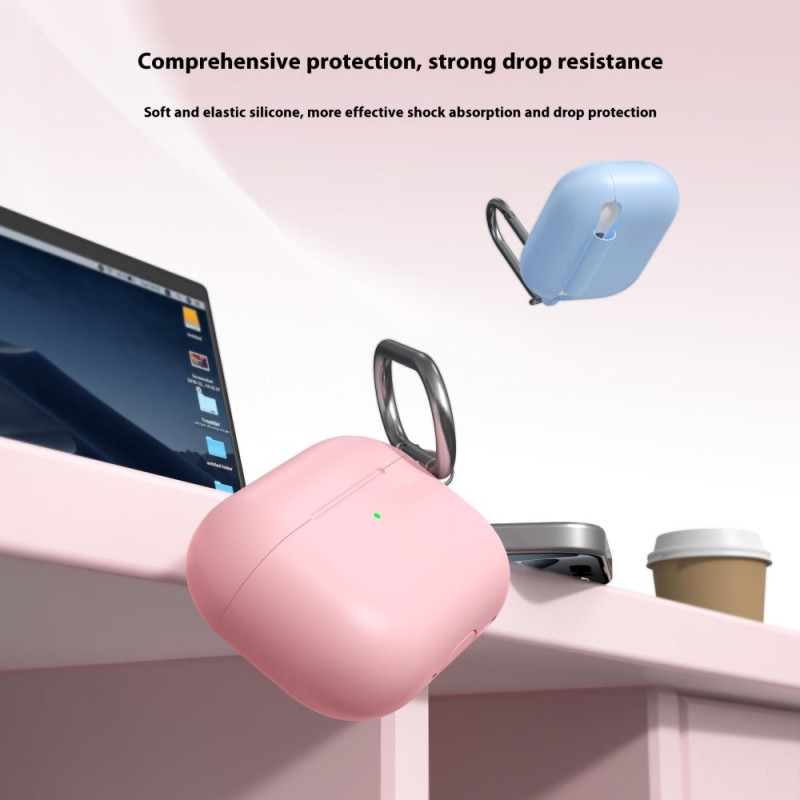 Proteggete i tuoi AirPods Pro 3 con questa cover in silicone spessa 2,3 mm. Protezione completa contro urti e cadute, compatibile con la ricarica wireless. Viene fornita con un pratico moschettone per un trasporto sicuro ogni giorno.