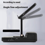 Support ajustable 3-en-1 alliant enceinte Bluetooth 5.1, chargeur sans fil et station d'accueil ergonomique. Design pliable avec rotation 360°, haut-parleurs double aimant 5W et batterie intégrée de 1500mAh. Parfait pour le bureau ou les déplacements.