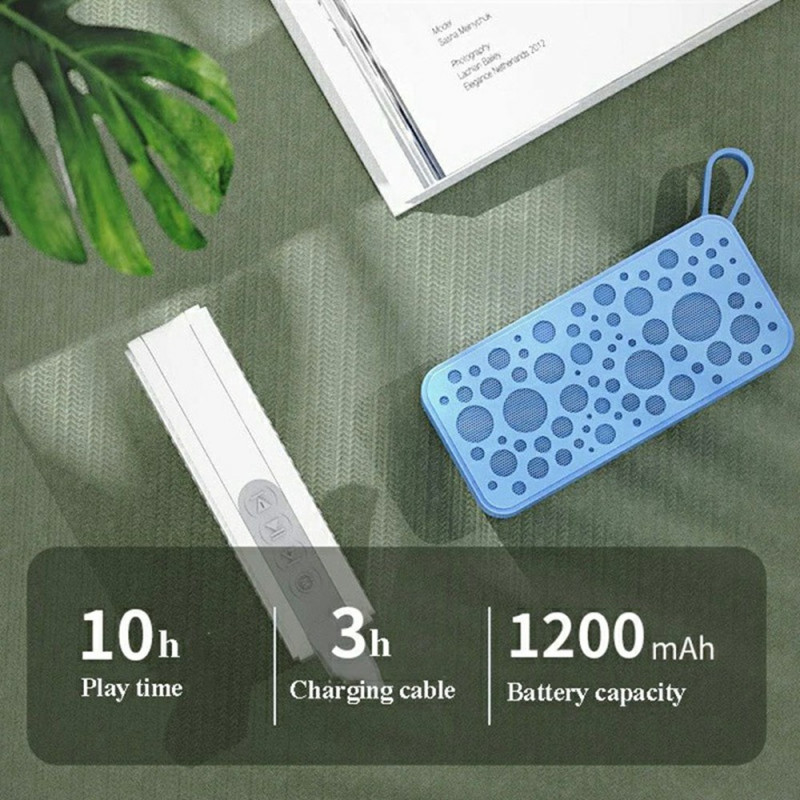 - Batteria di lunga durata: dotato di una batteria da 1200 mAh, questo altoparlante garantisce 8-10 ore di riproduzione continua a volume medio. Ideale per sessioni di ascolto prolungate senza ricarica continua, si ricarica completamente in 2-3 ore.