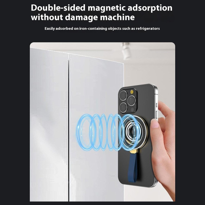 Questo supporto magnetico rotante con anello unisce eleganza, comfort e prestazioni per accompagnare il tuo smartphone ogni giorno. Realizzato in lega di zinco con un morbido rivestimento in silicone, offre una presa piacevole e sicura. Il potente sistema magnetico N52 composto da 18 magneti assicura una presa stabile, ideale per l'uso mani libere o come cavalletto. L'anello ruota di 360° e si inclina fino a 110°, consentendo di scegliere l'angolazione più comoda per guardare video, effettuare chiama o creare contenuti. Leggero e compatto, si adatta perfettamente a tutti i moderni smartphone.