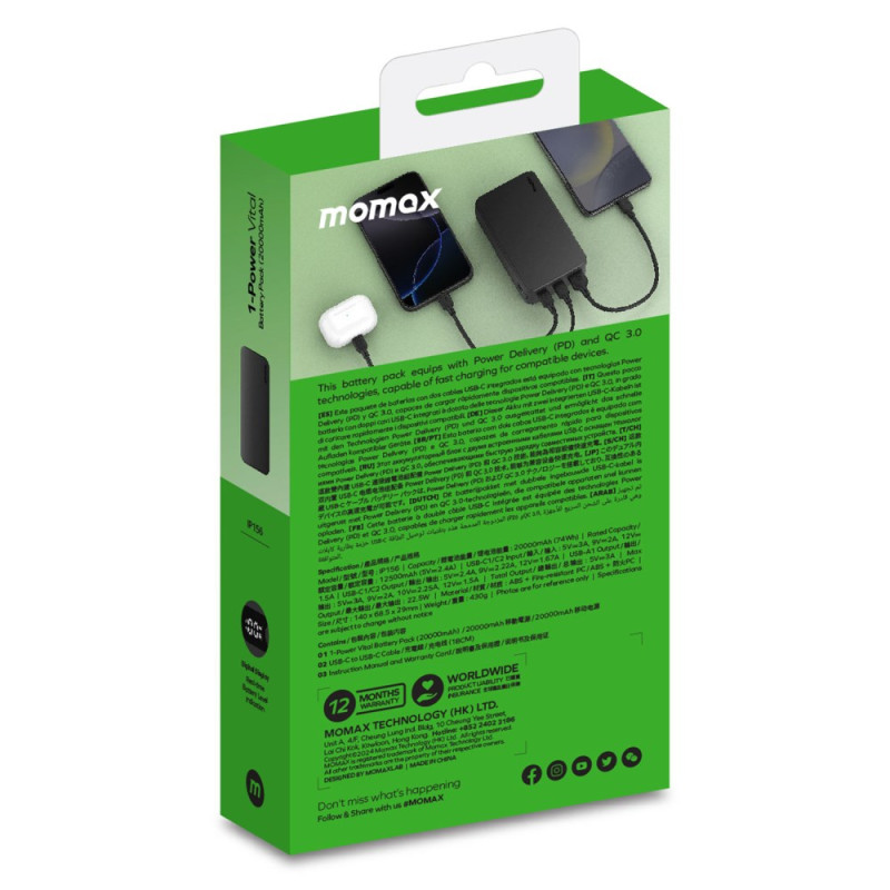 Mai più a corto di energia, anche con tre dispositivi da ricaricare. Questa batteria esterna da 20000 mAh ad alta capacità è l'hub di alimentazione essenziale per i viaggi o la vita quotidiana. Dotata di tecnologia di ricarica rapida JSB-CPD, eroga fino a 22,5W tramite la porta USB-A e 20W tramite USB-C, garantendo la massima velocità. Le tre porte versatili consentono di ricaricare fino a tre dispositivi contemporaneamente (smartphone, tablet, cuffie, ecc.). Il display digitale a LED consente di visualizzare immediatamente lo stato della batteria rimanente e della carica rapida, in modo da poter gestire la durata della batteria senza alcuno sforzo.
