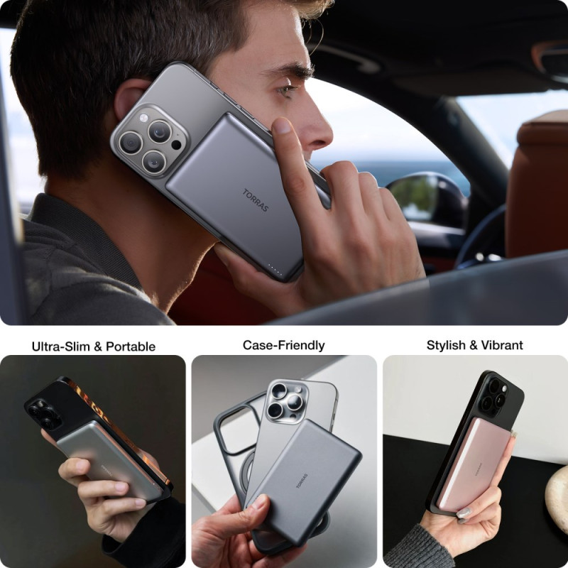 Raggiungere prestazioni di ricarica da record in un formato ultrasottile è la missione della batteria esterna TORRAS Minimag. Con soli 13,8 mm di spessore e 115 g di peso, questa unità da 5000 mAh è la più leggera della sua categoria, progettata per gli utenti mobili. Vanta una velocità eccezionale, supportando la ricarica rapida via cavo di 30W e la ricarica wireless fino a 27W, garantendo un'alimentazione rapida ed efficiente per i tuoi dispositivi. La potente funzione magnetica compatibile con MagSafe assicura una connessione stabile e senza interruzioni. Dotata di una protezione NTC avanzata e di batterie ai polimeri a lunga durata, questa batteria esterna offre una durata di oltre 3 anni, in modo da poter ricaricare in tutta tranquillità.