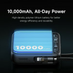Potenza ad alta capacità e dimensioni ultracompatte si uniscono in questa soluzione di alimentazione portatile. Questa batteria esterna da 10000 mAh è stata progettata per occupare uno spazio minimo grazie alle sue dimensioni miniaturizzate (73 x 63,5 mm) e ai cavi integrati. Fornisce una potenza massima di uscita di 22,5 W, assicurando una ricarica ultra-rapida dei tuoi dispositivi. La ricarica della batteria stessa è ottimizzata grazie a un ingresso rapido di 18 W. Il display digitale consente di monitorare con precisione il livello di carica, garantendo una gestione agevole della durata della batteria.