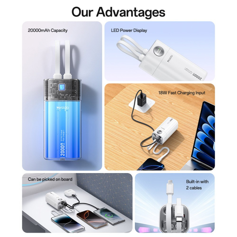 L'integrazione di una fonte di energia massiccia e di una tecnologia delle celle di qualità superiore fa di questa batteria esterna YESIDO l'apparecchiatura di elezione. Con una capacità di 20000mAh e celle 21700 ad alte prestazioni, garantisce una durata e una densità energetica eccezionali. Il design incorpora due cavi (USB-C e Lightning) che supportano fino a 22,5 W, eliminando la necessità di accessori aggiuntivi. Può caricare quattro dispositivi contemporaneamente. Il display digitale fornisce una lettura immediata dello stato della batteria. L'unità è realizzata in resistente ABS per una portabilità compatta ed è certificata CE per il mercato europeo.