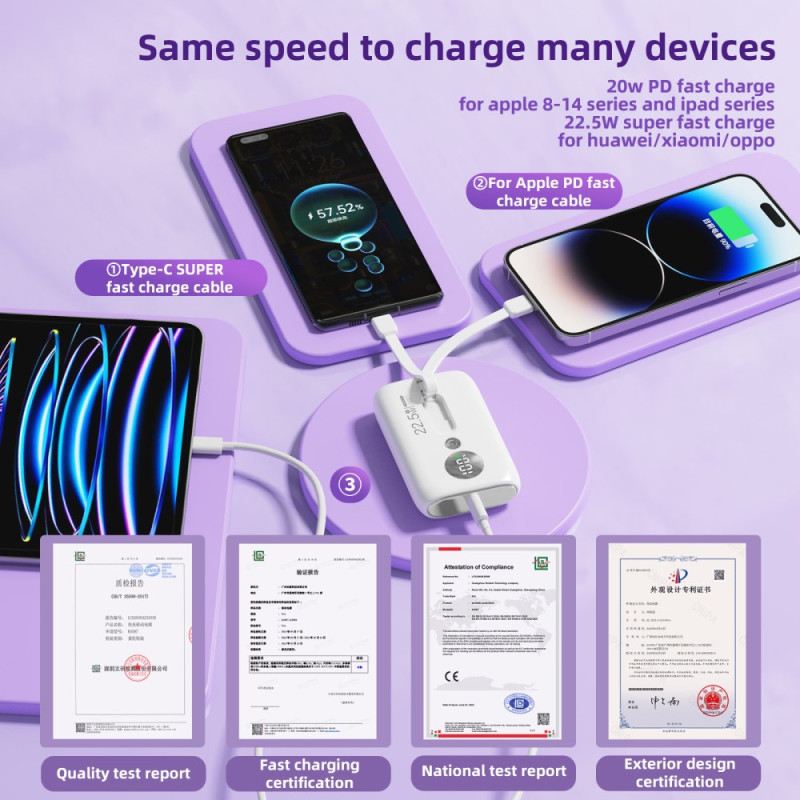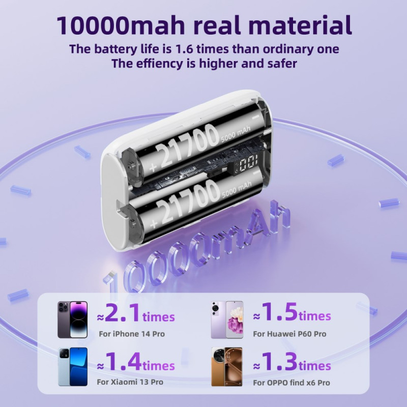 Il controllo termico avanzato e l'integrazione dei cavi ridefiniscono la ricarica rapida in formato tascabile. Questa batteria esterna ROISKIN da 10000 mAh è stata progettata per garantire la massima praticità: integra due cavi (Type-C e Lightning) che fungono anche da laccetto. La sua potenza di ricarica raggiunge i 22,5 W (tramite il cavo Type-C), mentre utilizza un chip di nuova generazione per mantenere una bassa temperatura e preservare la salute delle batterie. Il display digitale smart fornisce l'esatta quantità di batteria rimanente, sostituendo le spie luminose. Compatto e leggero, è l'alleato perfetto per la mobilità.
