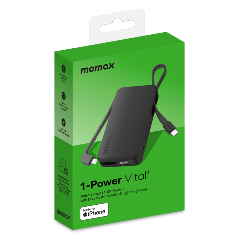 La convergenza della certificazione Apple MFi e della potenza PD di 30W offre una soluzione di ricarica portatile senza precedenti. Questa batteria esterna MOMAX da 10000 mAh è progettata per un'efficienza professionale e fornisce una ricarica rapida fino a 30W. L'integrazione di due cavi USB-C elimina la necessità di fili aggiuntivi, garantendo una soluzione completa e ordinata. La certificazione MFi conferma la compatibilità e la sicurezza della ricarica di iOS. Con tre uscite disponibili, può alimentare diversi dispositivi contemporaneamente. Il preciso display a LED consente di verificare facilmente le prestazioni.