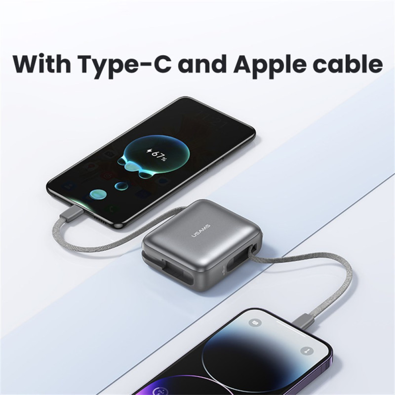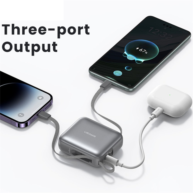 Questa batteria esterna USAMS combina potenza e praticità in un formato compatto progettato per accompagnarvi ovunque. La sua capacità di 10000 mAh consente di ricaricarla più volte, mentre la tecnologia da 20 W assicura un'alimentazione rapida e sicura ai dispositivi compatibili. Grazie ai cavi Type-C e Lightning integrati, non è necessario portare con sé accessori aggiuntivi e le tre porte disponibili consentono di ricaricare più dispositivi contemporaneamente. Il display a LED mostra chiaramente la percentuale di carica residua, rendendo più facile tenerne traccia immediatamente.