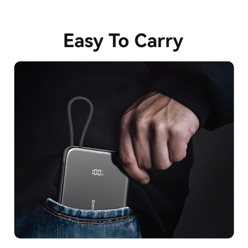 Questa batteria esterna magnetica da 5000 mAh combina snellezza e prestazioni per un uso quotidiano semplice e confortevole. Il suo design ultrasottile si infila facilmente in tasca, mentre il cavo Type-C integrato consente di ricaricarla senza bisogno di accessori aggiuntivi. La ricarica rapida da 20 W garantisce un'alimentazione efficiente e il display a LED fornisce una lettura precisa del livello di energia. Grazie all'attacco magnetico, si posiziona in modo naturale sui dispositivi compatibili. Le protezioni integrate garantiscono un utilizzo sicuro anche durante le ricariche prolungate.