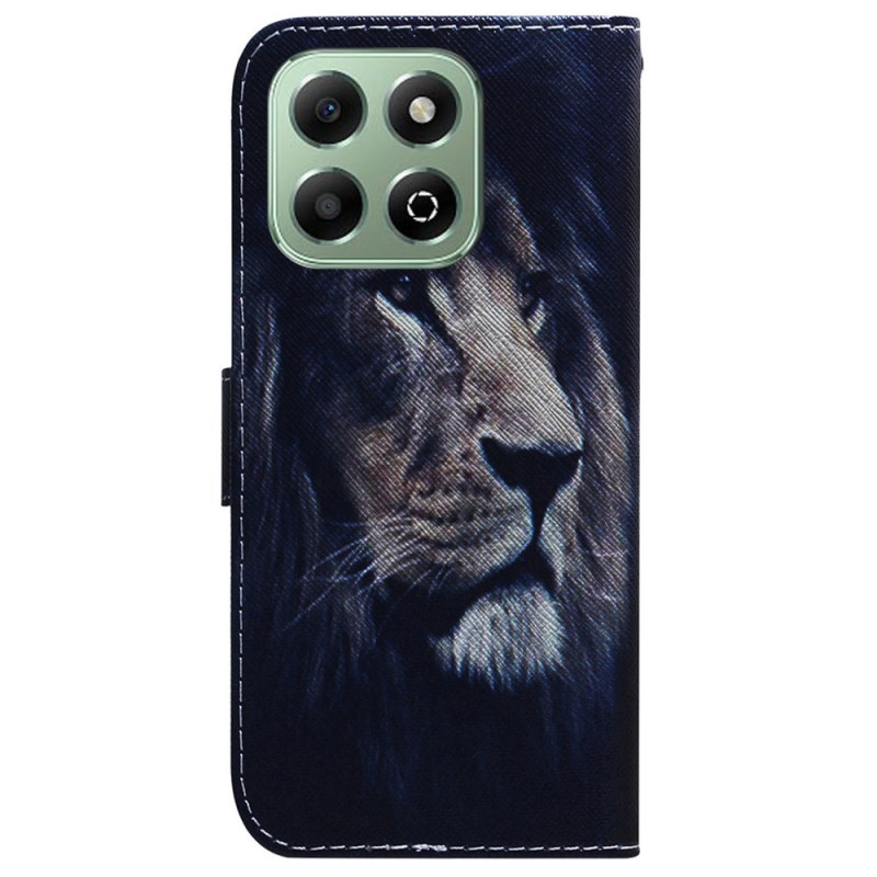 Elegante cover a portafoglio con motivo a leone per Honor X6b 4G. Design in pelle con portacarte integrato, supporto pieghevole e chiusura magnetica sicura. Protezione completa contro urti e graffi, mantenendo le carte a portata di mano.