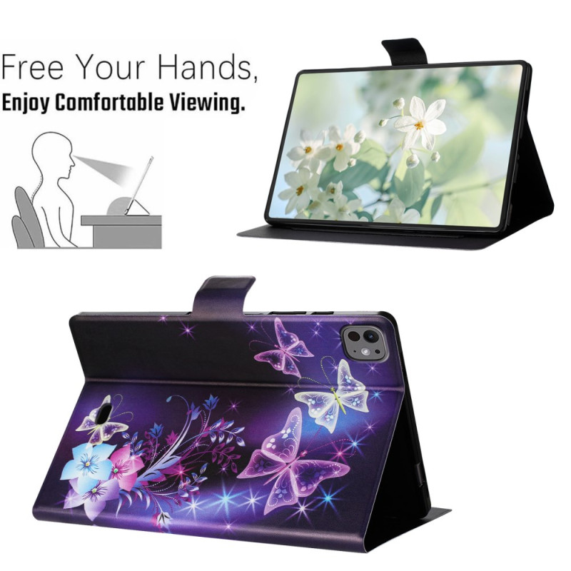 Découvrez cet étui élégant pour iPad Pro 11 (2025) / 11 (2024), alliant style et fonctionnalité. Avec son motif imprimé de papillon violet, sa texture litchi en cuir PU, et sa base en TPU absorbant les chocs, il offre une protection optimale. Profitez des fentes pour cartes, de la fonction support et de l'activation automatique de l'écran pour une expérience utilisateur améliorée.