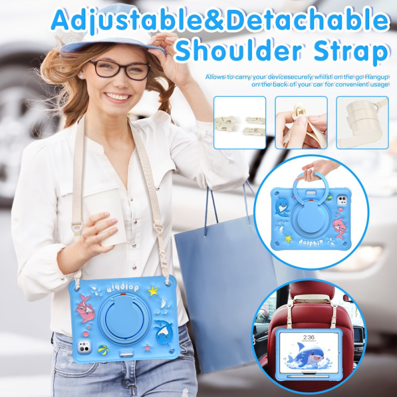 Scoprite la nostra adorabile cover multifunzione per iPad Pro 11 (2025) / 11 (2024). Con il suo simpatico motivo a delfino, la protezione multistrato, la maniglia girevole e il cavalletto pieghevole, offre la massima protezione e versatilità. È inoltre possibile sfruttare il portamatite integrato e la tracolla staccabile per la massima portabilità.