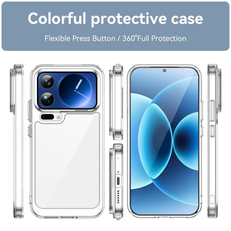 Protezione completa ed elegante per il tuo Xiaomi 17 Pro Max. Guscio ibrido in acrilico e TPU con angoli rinforzati antiurto, pellicola in vetro temperato HD inclusa. Il design cristallino valorizza il telefono e offre una protezione a 360°.
