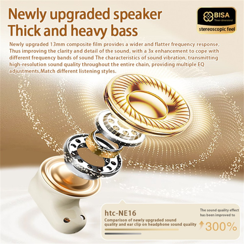 Gli auricolari Bluetooth 6.0 HTC TWS offrono un ascolto aperto, che consente di prestare attenzione a ciò che ci circonda e di godere di un comfort duraturo. L'algoritmo AURA Voice migliora le frequenze medie e alte per far emergere il meglio delle voci e offrire un'atmosfera sonora chiara e precisa. Il microfono ad alta sensibilità, combinato con l'ENC, riduce efficacemente il rumore del vento per chiama più fluide. La durata della batteria di circa 4,5 ore e la ricarica rapida garantiscono un utilizzo continuo, mentre i comandi a sfioramento consentono di accedere facilmente alle modalità musica e gioco.