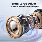 Gli auricolari HTC NE29 sono caratterizzati da un design ultraleggero, con un peso di soli 5 g per orecchio, e da auricolari in silicone liquido per un comfort duraturo. La resistenza IPX4 li rende adatti sia allo sport che all'uso quotidiano. L'equalizzazione adattiva, ottimizzata dall'intelligenza artificiale, adatta il suono alla struttura dell'orecchio per un ascolto personalizzato. Il microfono ad alta sensibilità combinato con l'ENC garantisce chiama chiare. I comandi a sfioramento consentono di gestire facilmente la riproduzione, il volume e le modalità musica o gioco.