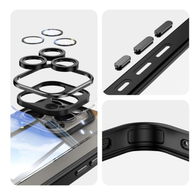 Protezione completa 2 in 1 per il tuo iPhone 13 Pro Max: cover in TPU trasparente antiurto con design airbag e pellicola in vetro temperato ad alta definizione. Pulsanti metallici indipendenti e protezione integrale per l'obiettivo fotografico per la massima sicurezza.