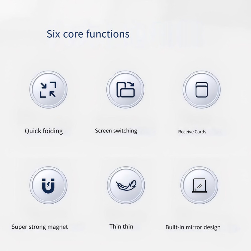 Scoprite questo portacellulare magnetico pieghevole che unisce funzionalità e stile. Dotato di uno specchio HD e di un pratico portacarte, offre un supporto stabile per il tuo