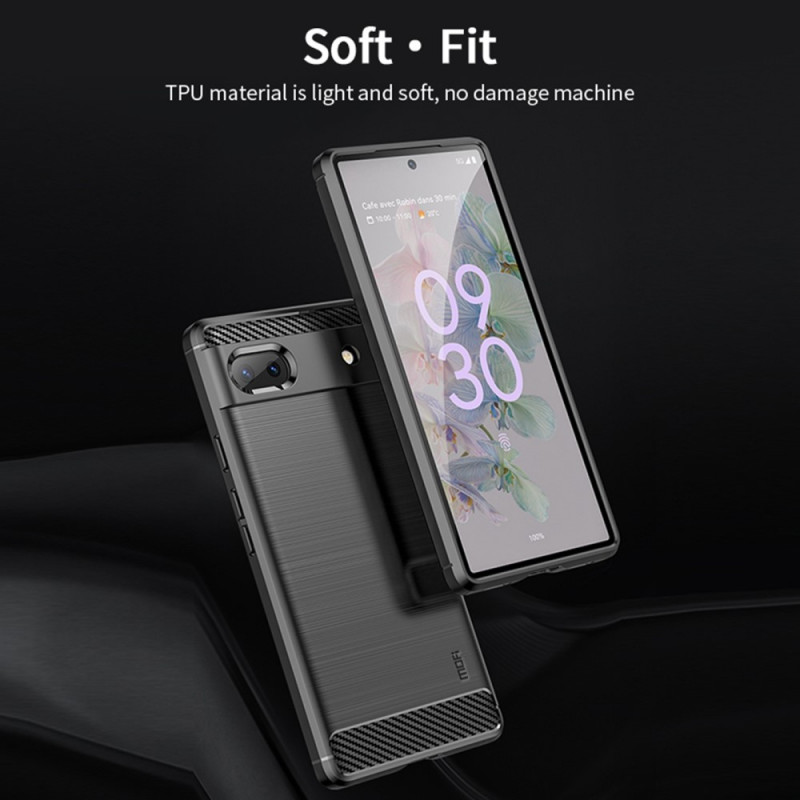 Cette coque en silicone à texture fibre carbone de chez Mofi propose une protection fine et optimale au dos et aux rebords de votre Google Pixel 6A.