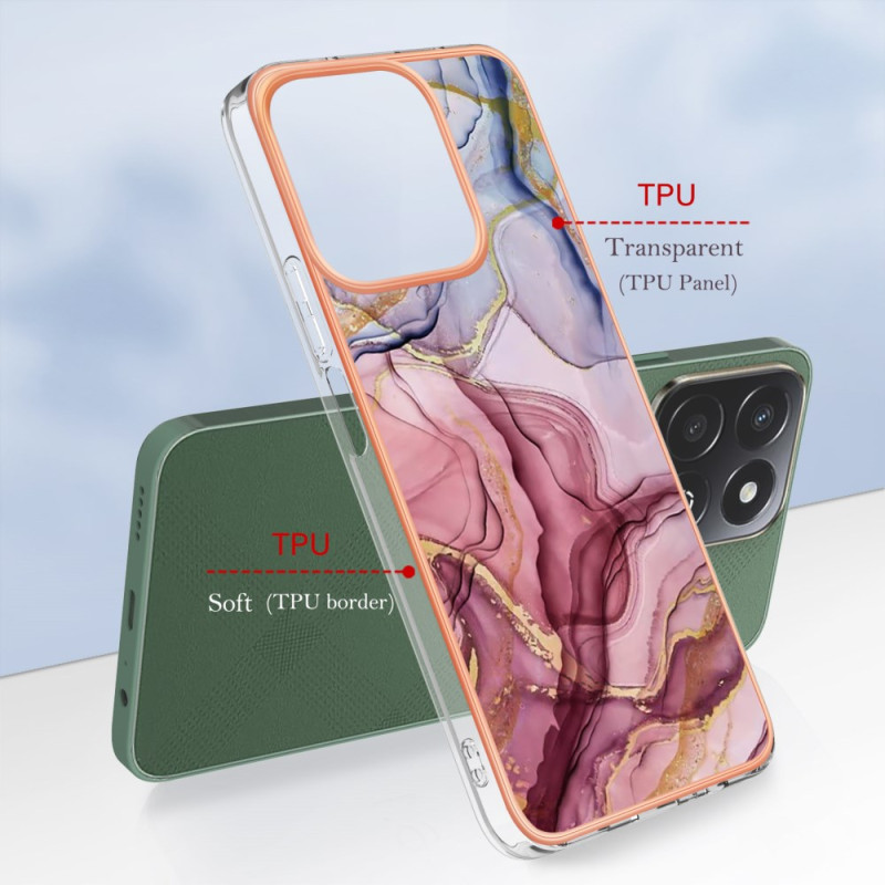 Proteggete il tuo Honor X7c 4G / 200 Smart 5G con stile grazie a questo cover flessibile in TPU con un raffinato motivo a marmo. Caratterizzato da una finitura elettrolitica premium e da bordi rialzati di 2 mm per lo schermo e di 3 mm per la fotocamera, offre la massima protezione...