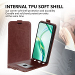 Custodia verticale in pelle PU premium per Honor 200 Smart 5G / X7c 4G. Design pratico con apertura verso il basso per l'utilizzo con una sola mano, slot per schede integrato e chiusura magnetica sicura.