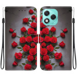 Elegante cover in pelle sintetica con motivo a rose rosse per Honor 400 Lite 5G. Presenta un supporto pieghevole, 2 scomparti per carte, uno scomparto per contanti e un cinturino rimovibile. Chiusura magnetica sicura per una protezione ottimale.