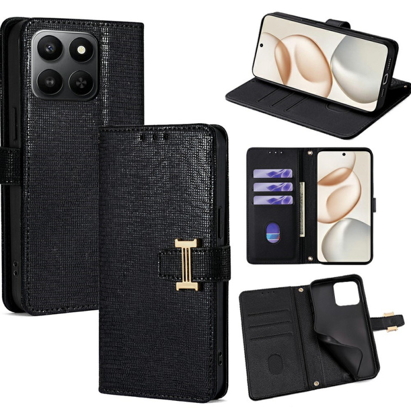 Elegante portafoglio con anello a I in metallo e chiusura magnetica. Presenta 3 scomparti per carte, 1 tasca per banconote e un supporto regolabile per l'utilizzo a mani libere. Protezione completa contro graffi e cadute.