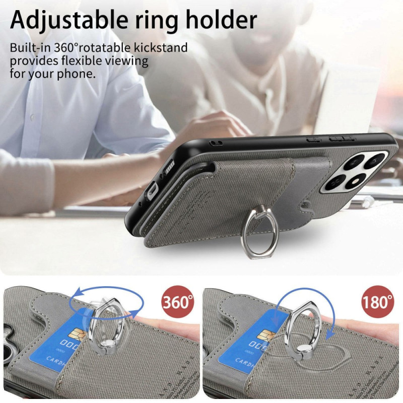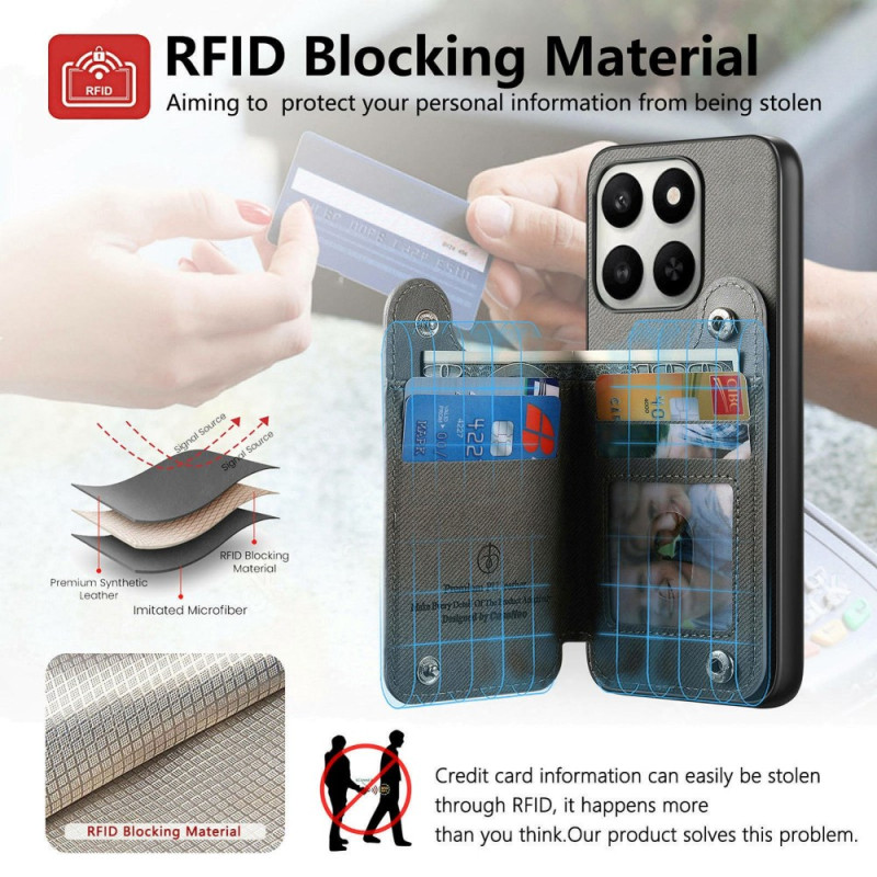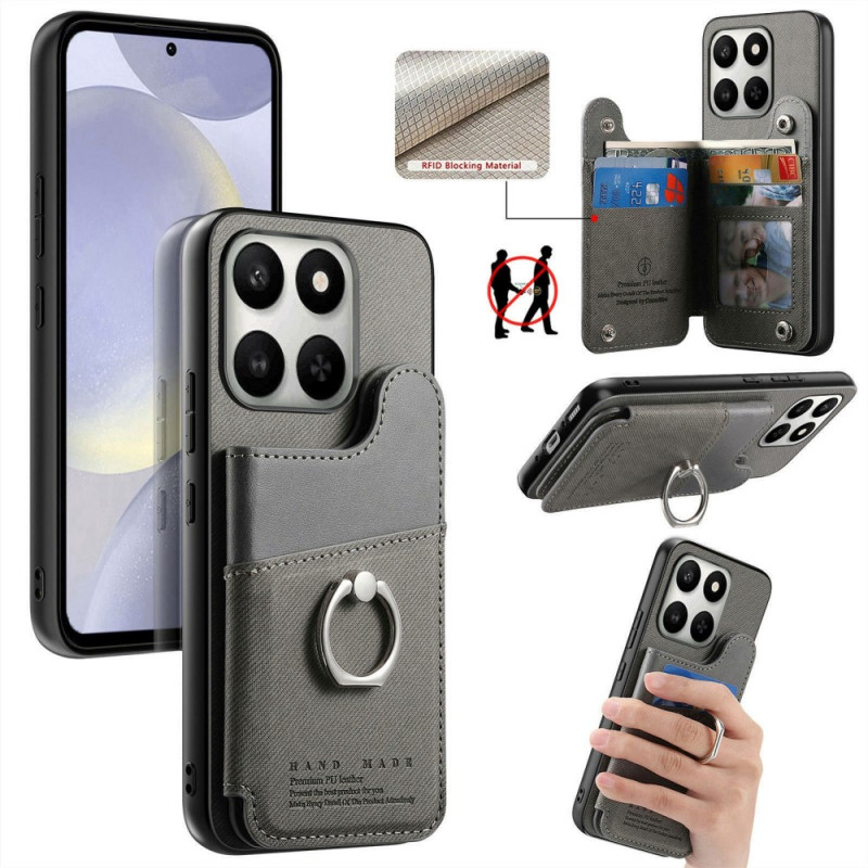 Custodia multifunzione in pelle, TPU e PC per Honor 400 Smart 5G / 4G / X7d 5G / 4G. Dispone di slot RFID per 4 carte, supporto regolabile, anello rotante a 360° e protezione robusta. Design elegante e strutturato con chiusura a scatto per un facile accesso.