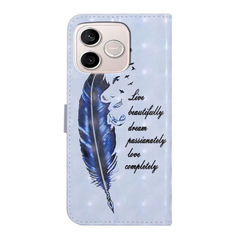 Honor 600 Lite 5G con questa cover con motivo a piume blu in rilievo.