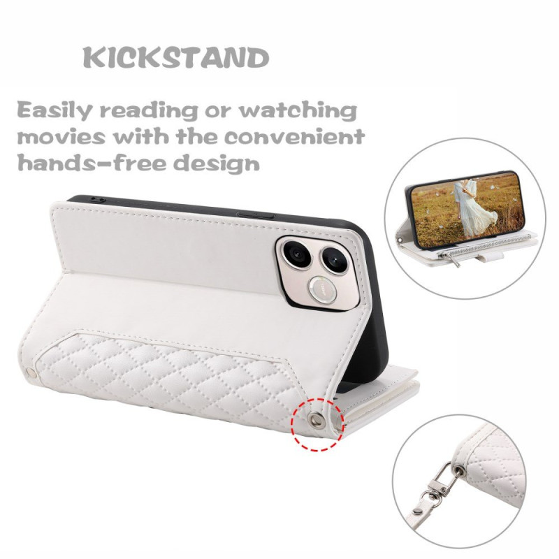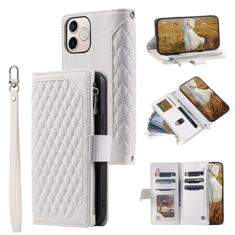 Il motivo a rombi cuciti aggiunge un tocco di eleganza incomparabile, mentre il design all-in-one sostituisce il portafoglio.