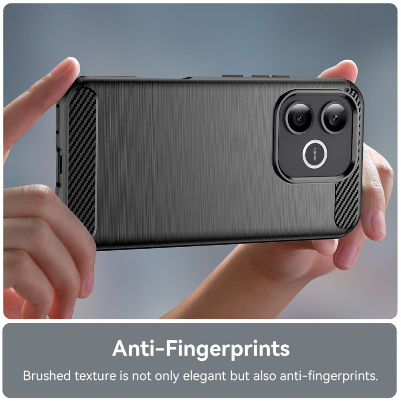 La texture in carbonio spazzolato gli conferisce un aspetto sportivo e raffinato, mentre i bordi rialzati proteggono efficacemente lo schermo e la fotocamera.